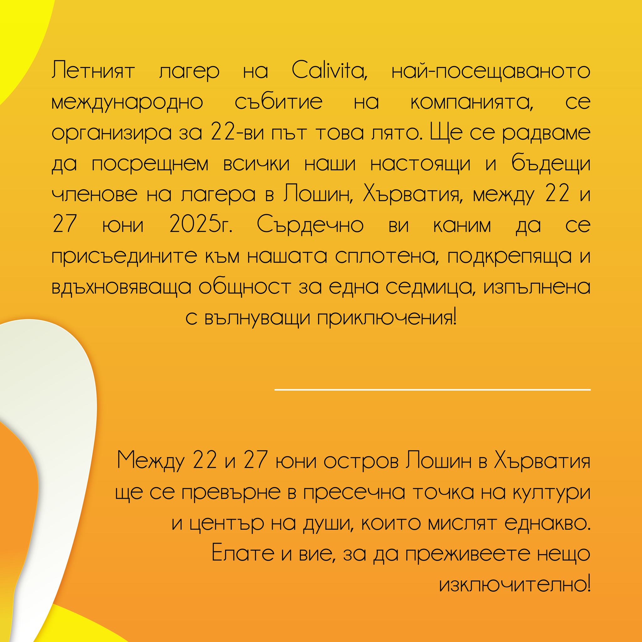Записванията за годишния летен лагер’25 на #Calivita официално започнаха! Между 22 и 27 юни остров Лошини в Хърватска ще се превърне в пресечна точка на култури…