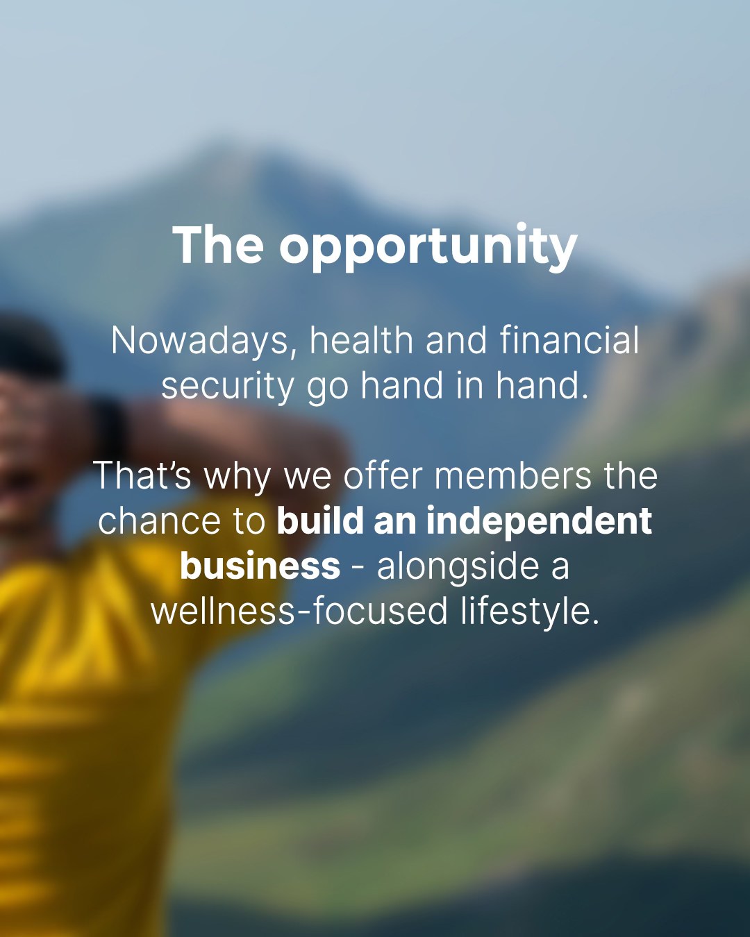 Zdrowie i bezpieczeństwo finansowe mogą iść w parze! Wyobraź sobie, że masz szansę zbudować niezależny biznes, w którym będziesz mieć pełne wsparcie, bez presji. Nasz przejrzysty i przewidywalny system prowadzi Cię krok po kroku, dzięki czemu możesz rozwijać się we własnym tempie, dbając jednocześnie o siebie i swoją przyszłość. Zrób pierwszy krok w kierunku życia, w którym Twoje zdrowie i finanse prosperują razem!