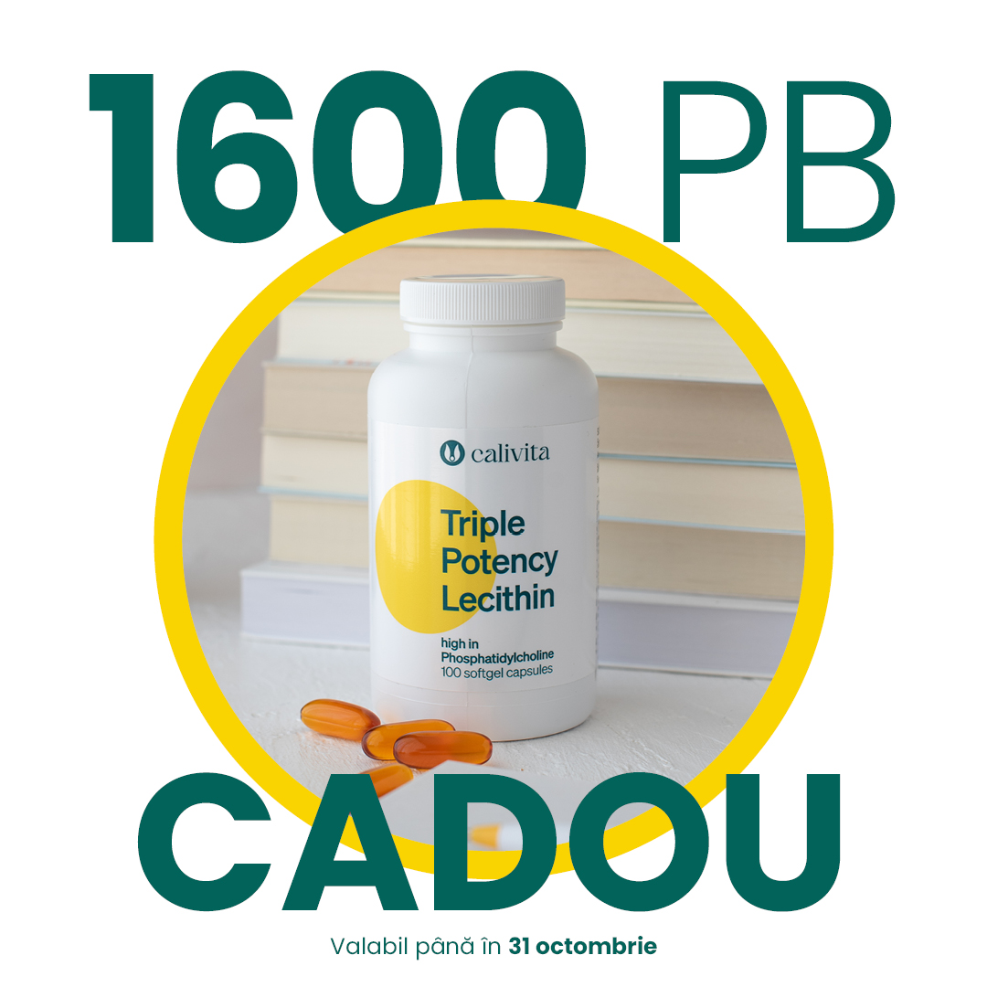 Şi un mic cadou din partea noastră: Dacă adaugi în coș produse preferate în valoare de 1600 Puncte Bonus, noi îți oferim cadou un Triple Potency Lecithin: contribuie la memorie , concentrare și la protecția hepatică.