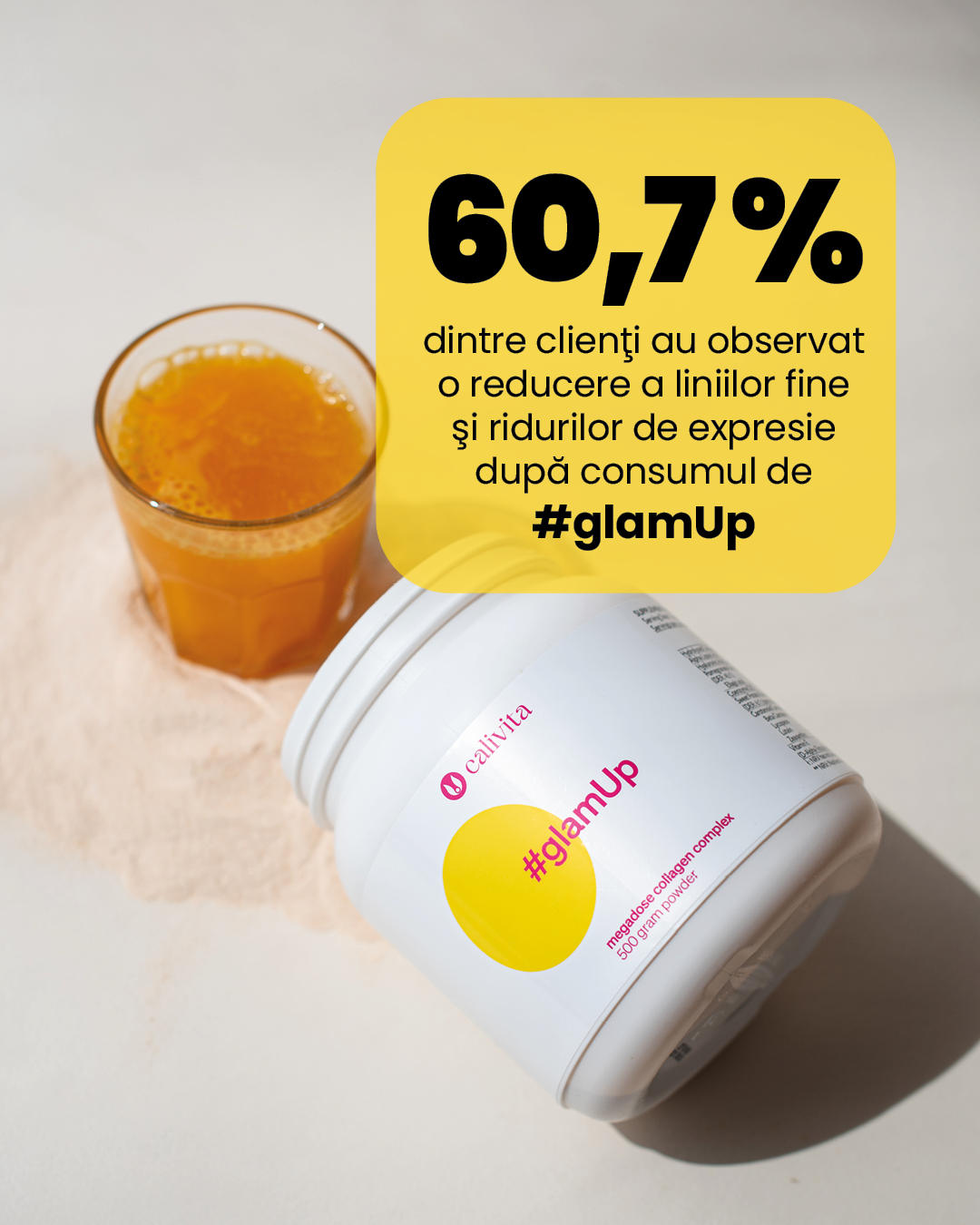 #glamUp conţine megadoză de colagen și antioxidanți naturali pentru un ten mai ferm, hidratat și radiant. Transformă micile semne ale timpului în frumusețe vi…