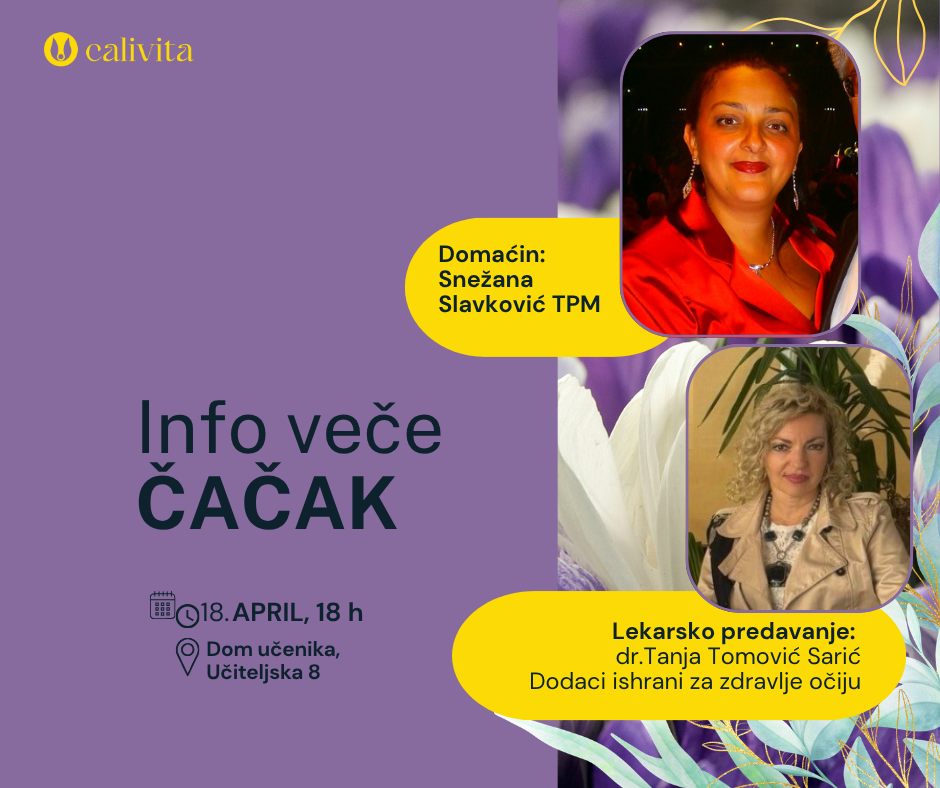 Pozivamo Vas na Info veče u Novom Sadu ponedeljak, 20. APRIL s početkom u 18h Calicentar prodavnica, Hadži Ruvimova 42. Domaćini večeri: Mile Vukovljak TPM Lek…