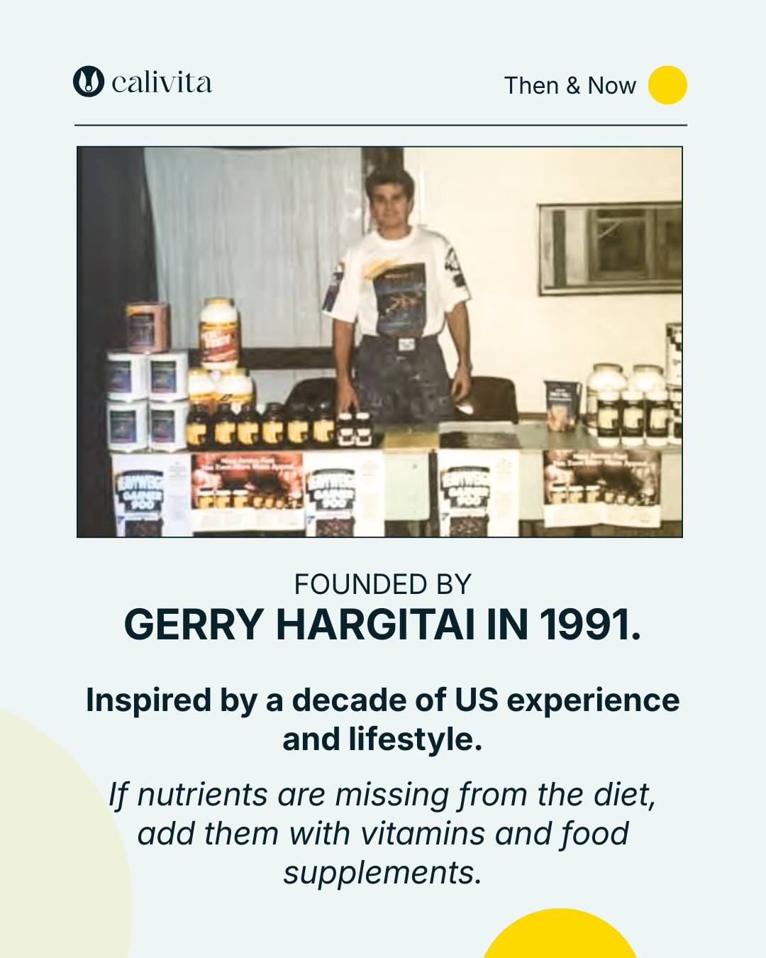 Wtedy i teraz: 1991 Zaczęliśmy jako California Fitness. Jeden jasny pomysł: jeśli czegoś brakuje w diecie, uzupełnij to wysokiej jakości witaminami i suplementami diety. Od małego stołu po rosnącą społeczność. Chcesz więcej historii z początków? #Calivita #Calipres #ThenAndNow #BrandStory #Since1991 #CaliforniaFitness #FoundersStory #WellnessJourney #Supplements #QualityFirst #ShineOn
